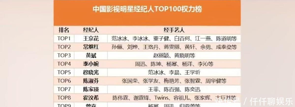 2022年,有媒体发布了一份明星经纪人权力排行榜,该榜单虽然称不上权威,而且引起大众的颇多微词。但提到这份榜单的第一名王京花时,没有任何一个人提出不同的看法,掌控京圈,架空华谊,“内地第一经纪人”的称号实至名归。王京花作为中国第一代文化经纪人,率先开创了我国的经纪人经济,培养出了诸如“双冰”、陈道明等诸多“天王巨星”。